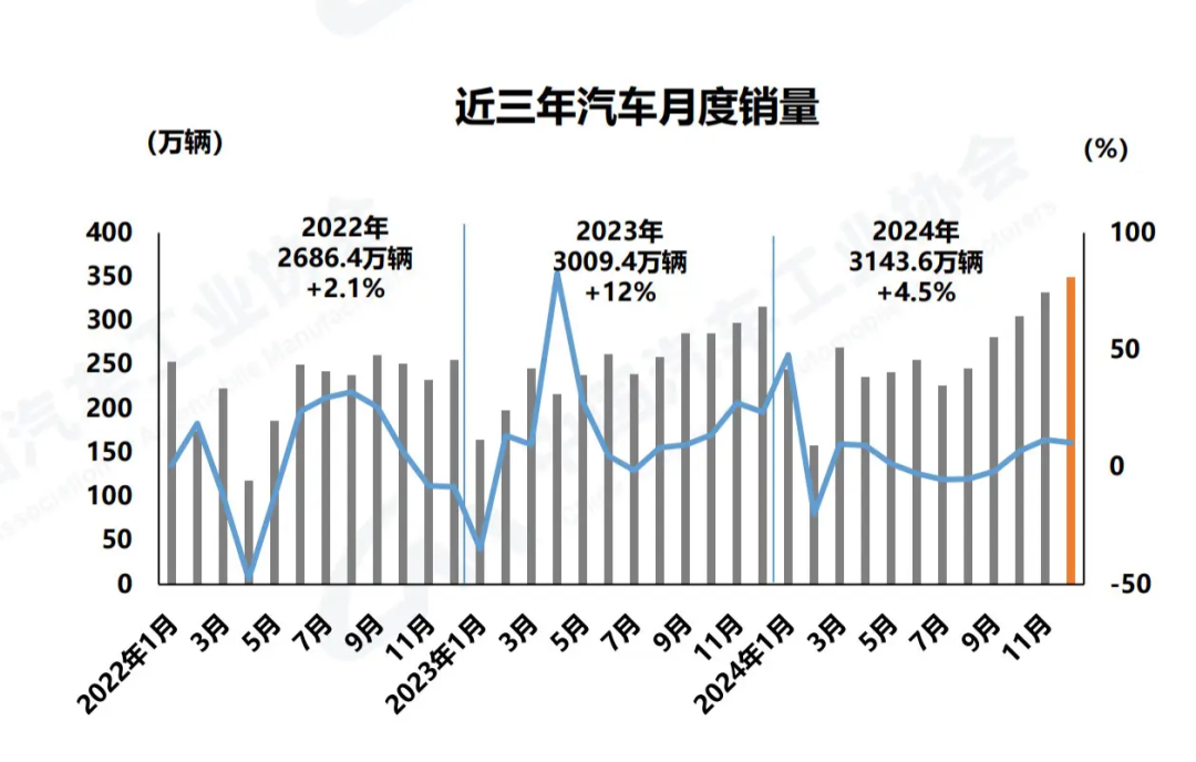 一方面,车企“以价换量”策略已经触及天花板。据中国汽车工业协会数据,2024年,我国汽车销量约3144万辆,同比增长4.5%,低于过去十年平均6%的增速,其中国内市场规模基本稳定在2600万辆左右。