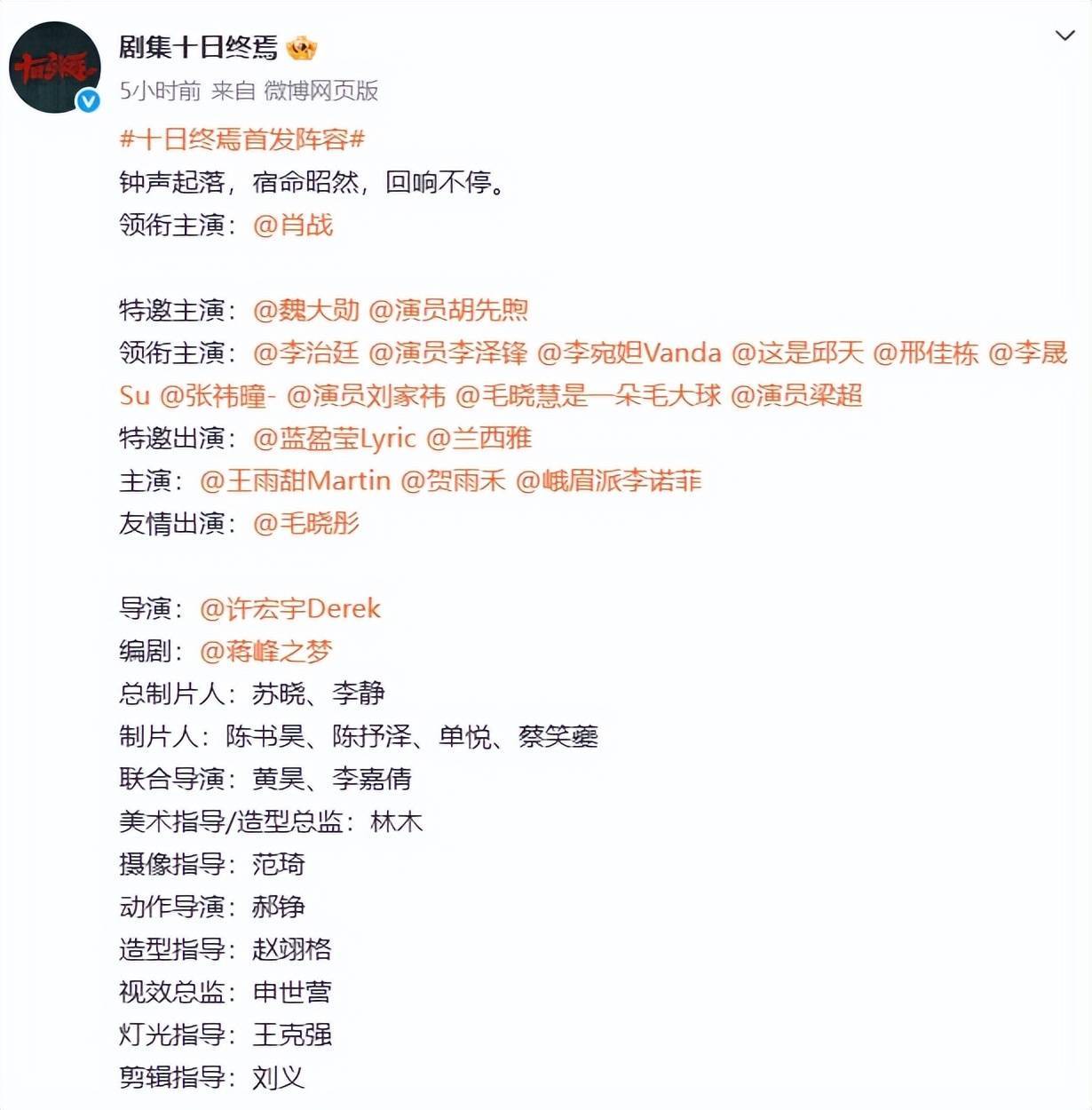 02 肖战挑大梁,天选男主角《十日终焉》能在开机当天就引爆热搜,也是因为演员阵容足够强悍。